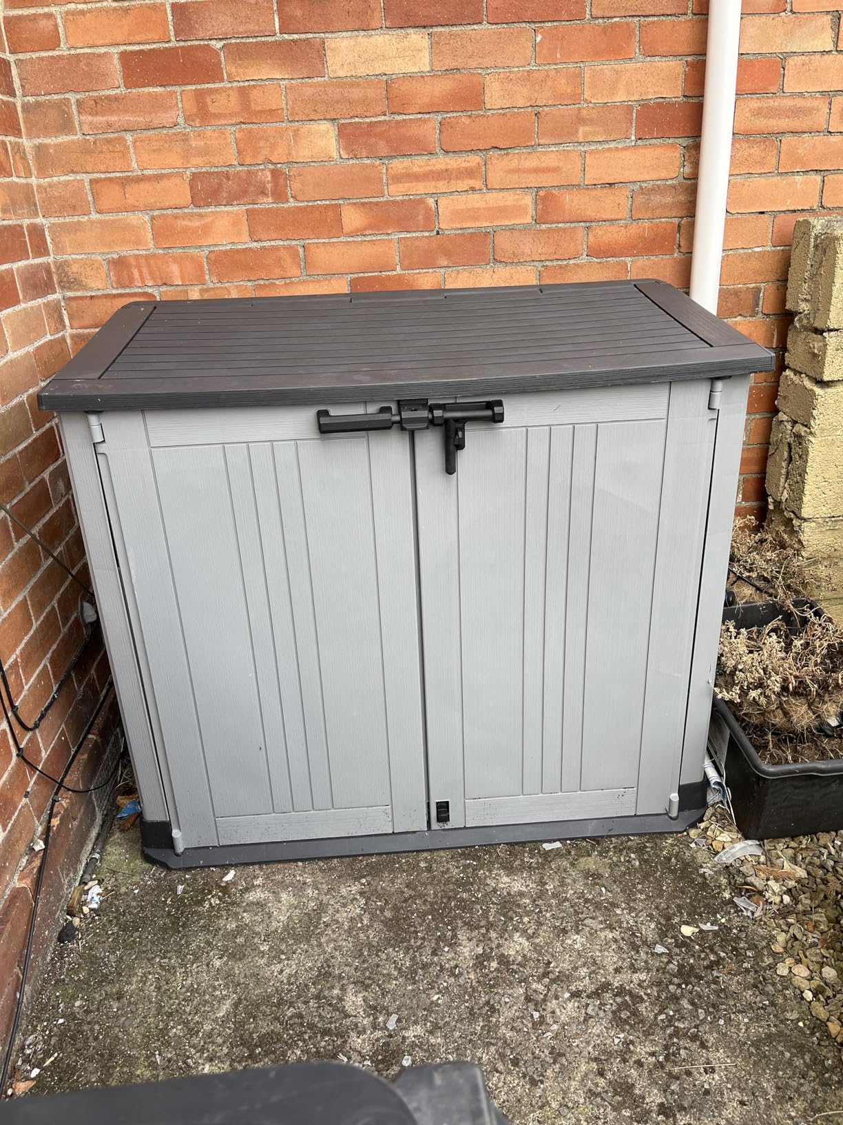 This shed is sturdy, weather-resistant, and surprisingly spacious. It fits my bins and garden tools with ease, looks great in beige and brown, and was simple to assemble. Excellent value — highly recommend!😍