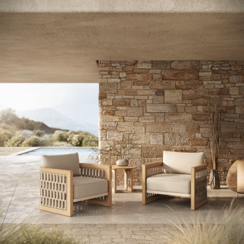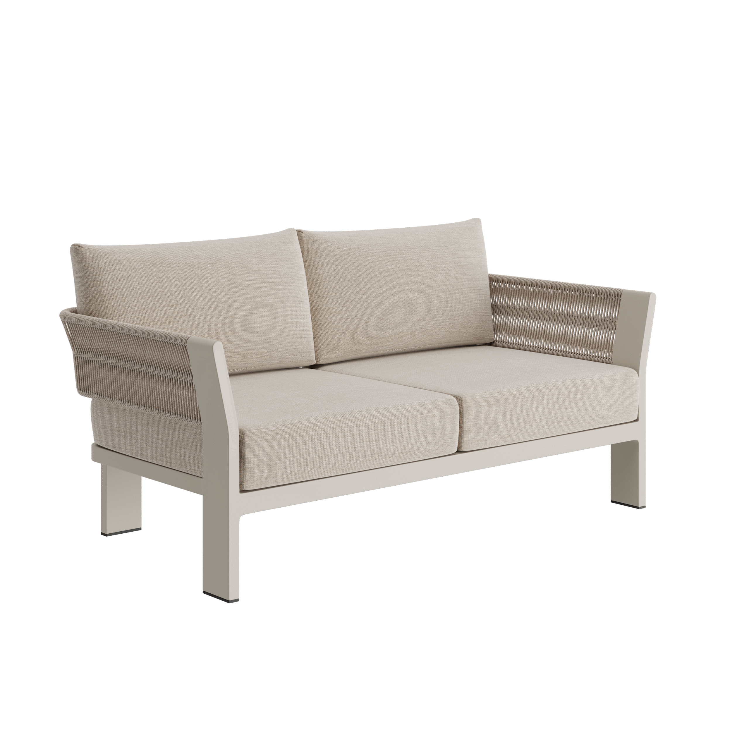 The powder-coated aluminium frame is lightweight yet sturdy whilst being resistant to rust and corrosion, ensuring it retains its pristine appearance season after season. The rope is skilfully hand woven to withstand the rigours of outdoor use without fraying. The seat cushions are covered in Natural Weave fabric which promises resilience to soiling and mildew whilst also being water-repellent with a quick dry foam inner. This piece combines craftsmanship with enduring materials, promising years of enjoyment.