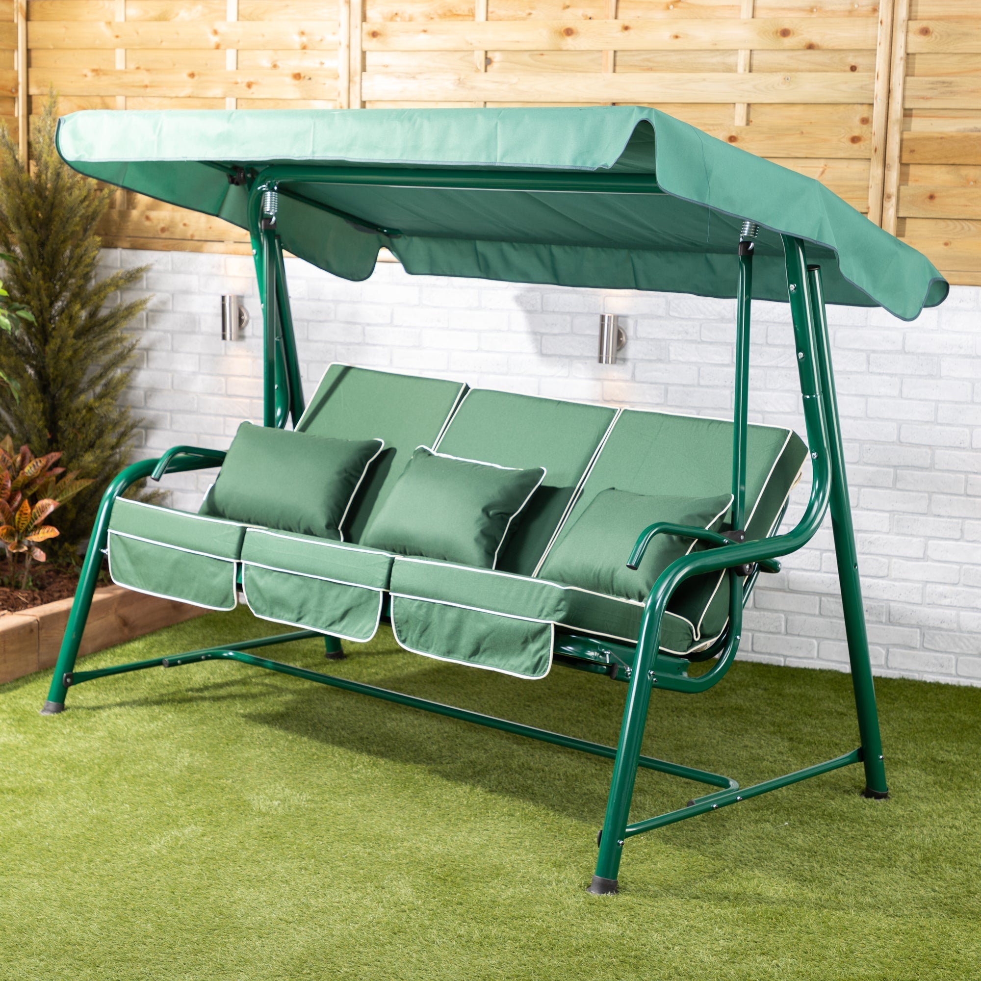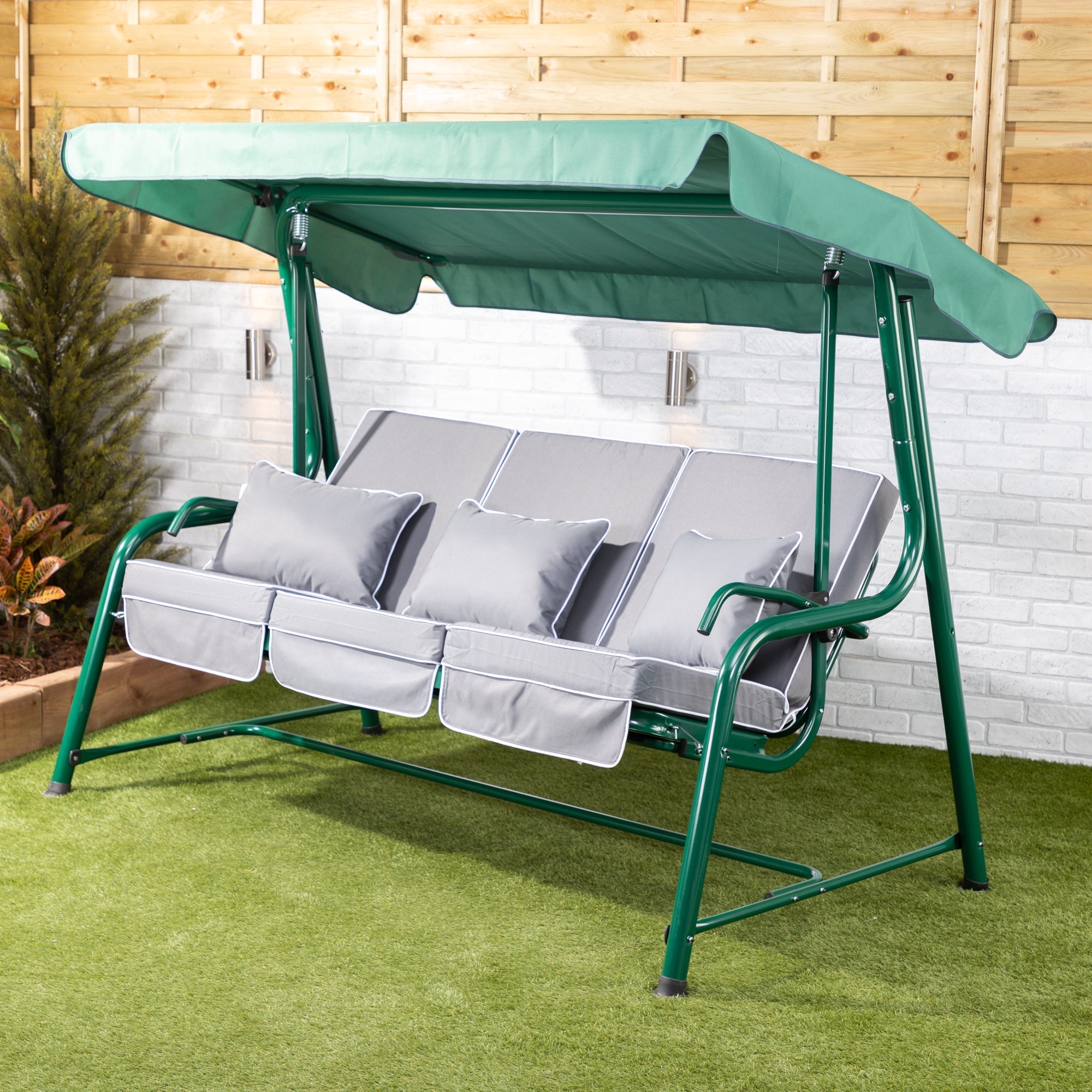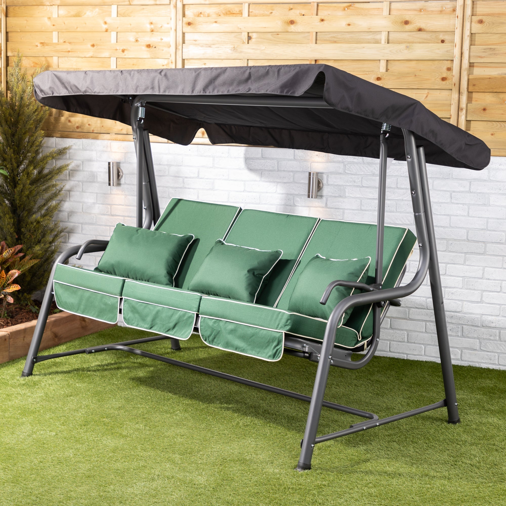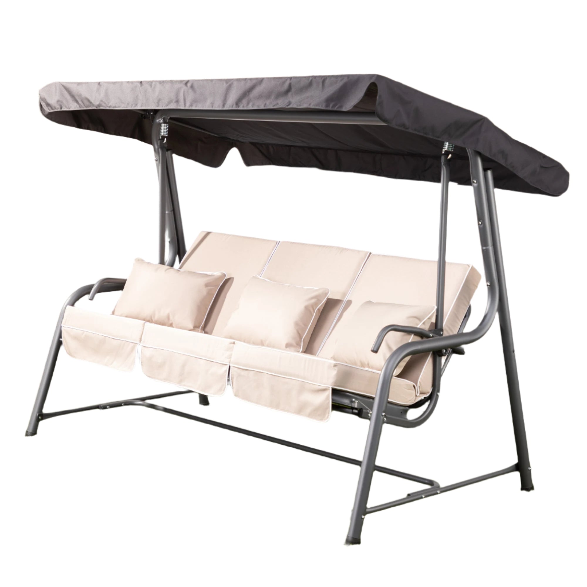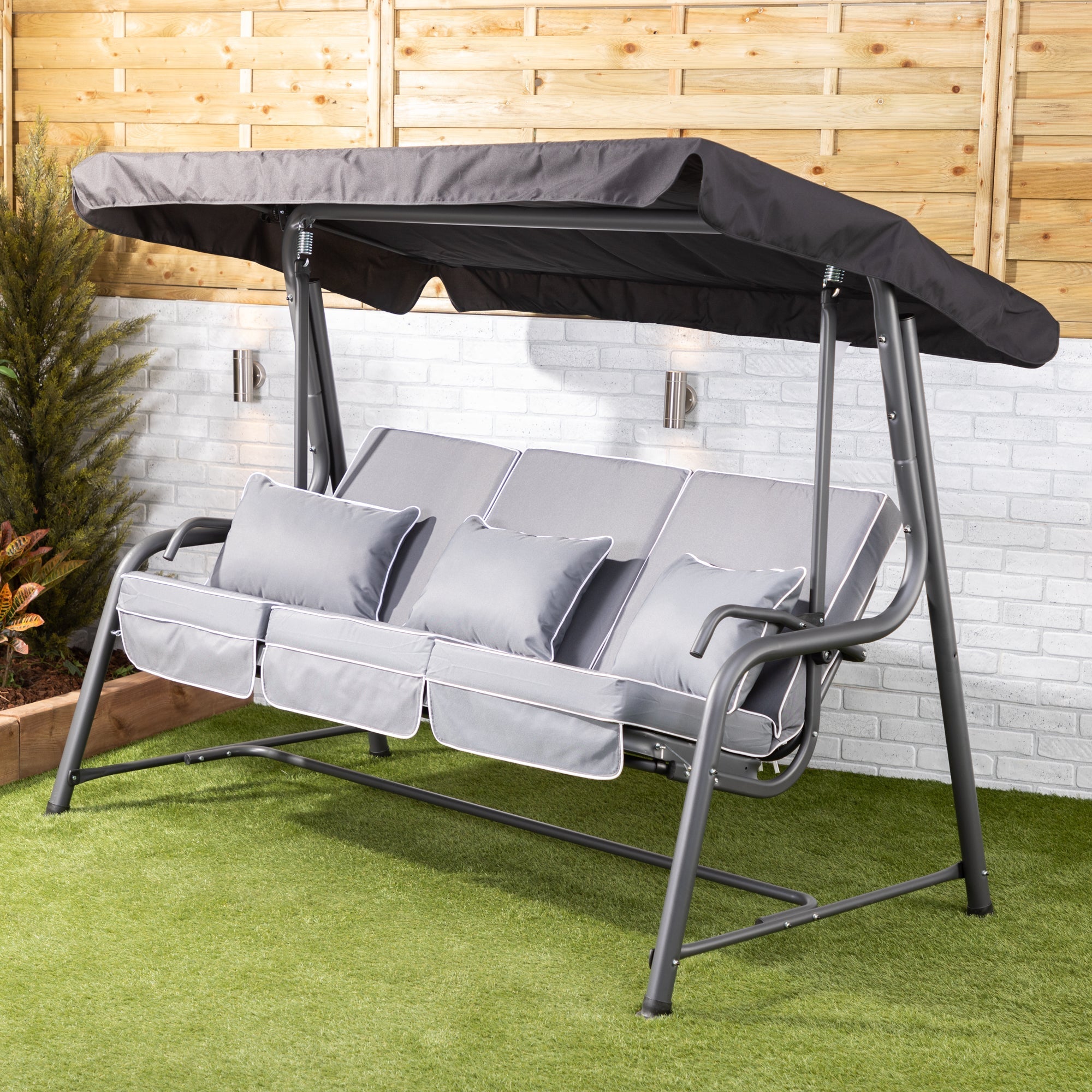 Experience the ultimate blend of comfort and versatility with our Turin Reclining Garden Swing Seat. The 2-in-1 swing seat is designed to accommodate 3 people and effortless transforms from a relaxing swing into a spacious garden bed